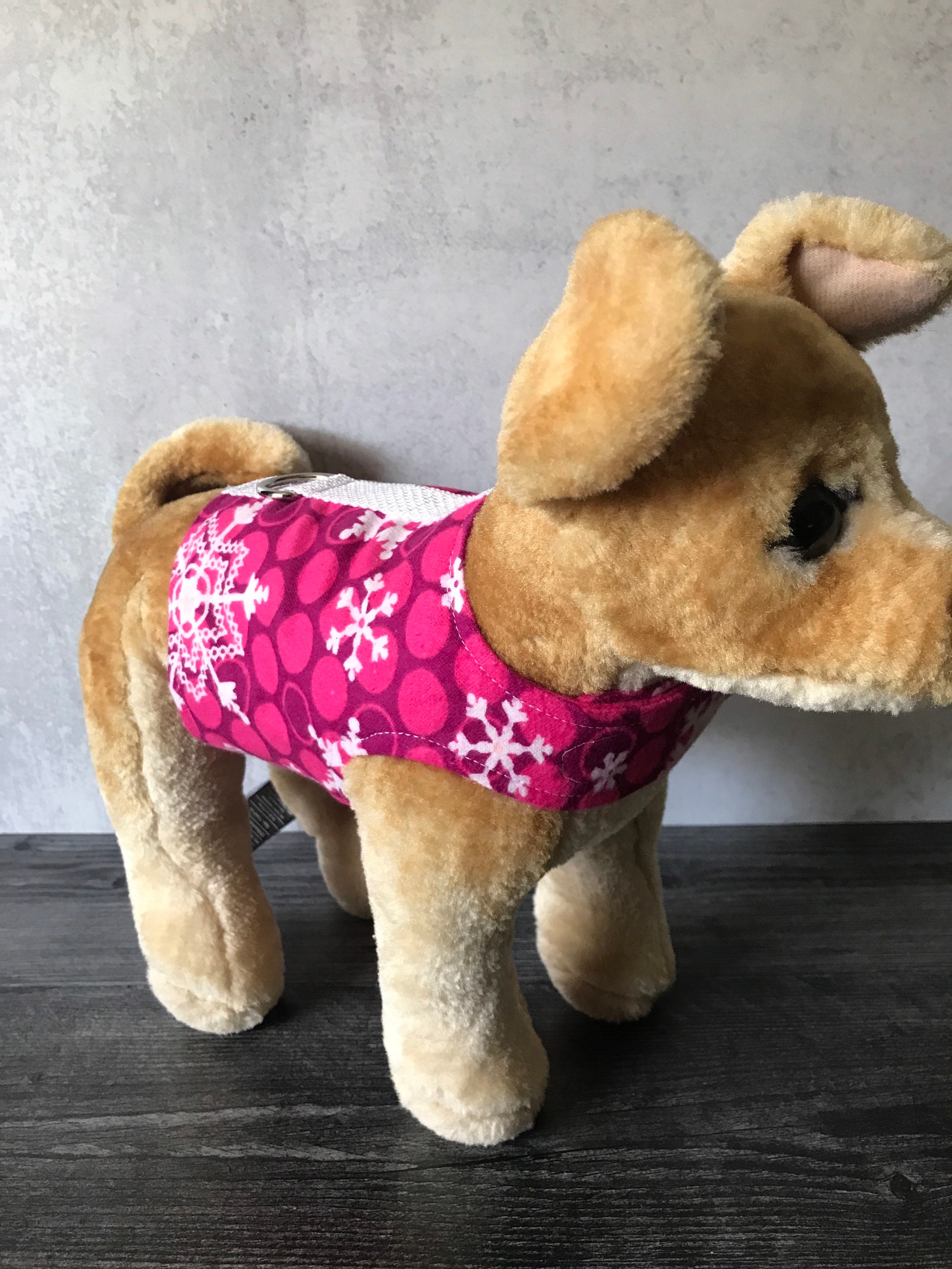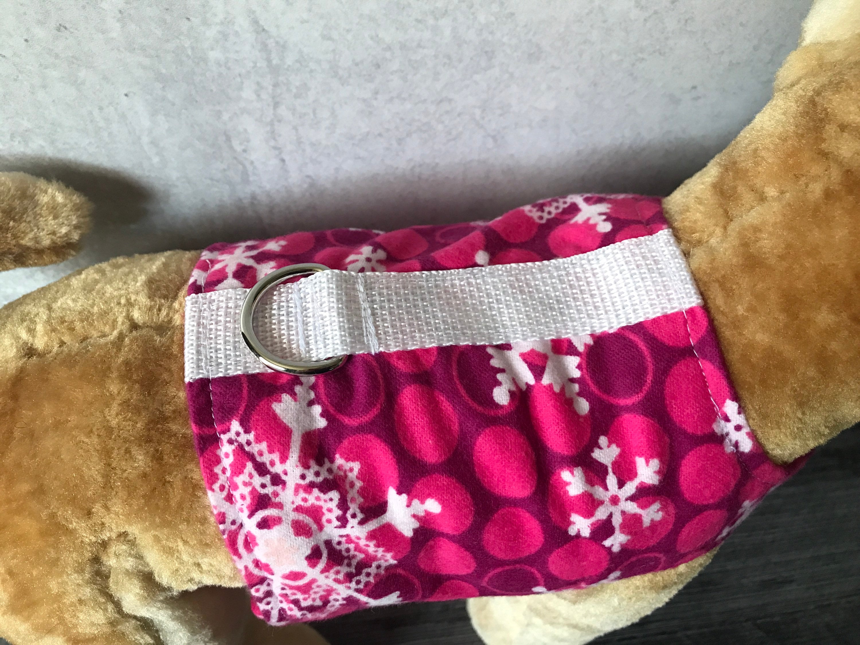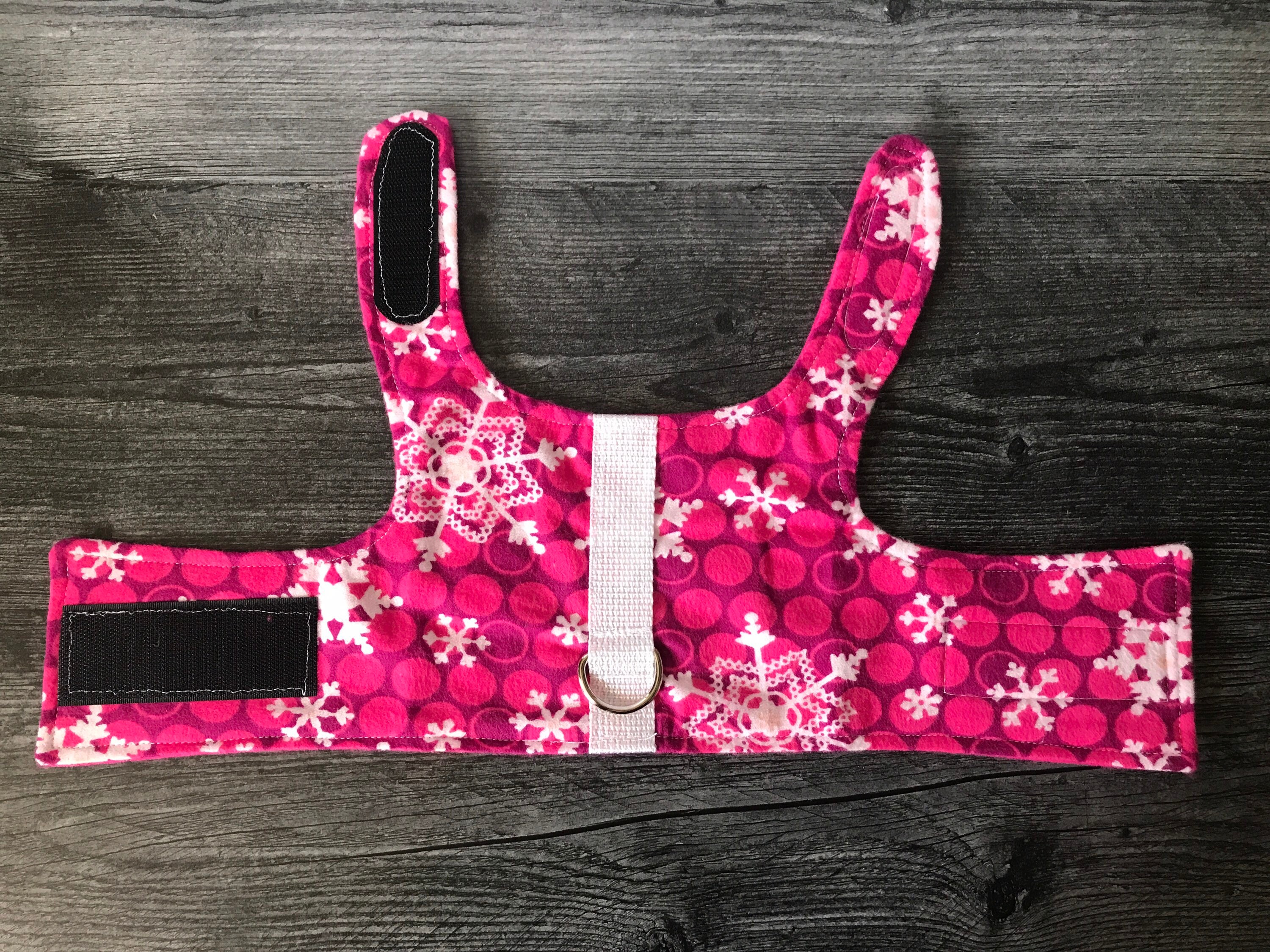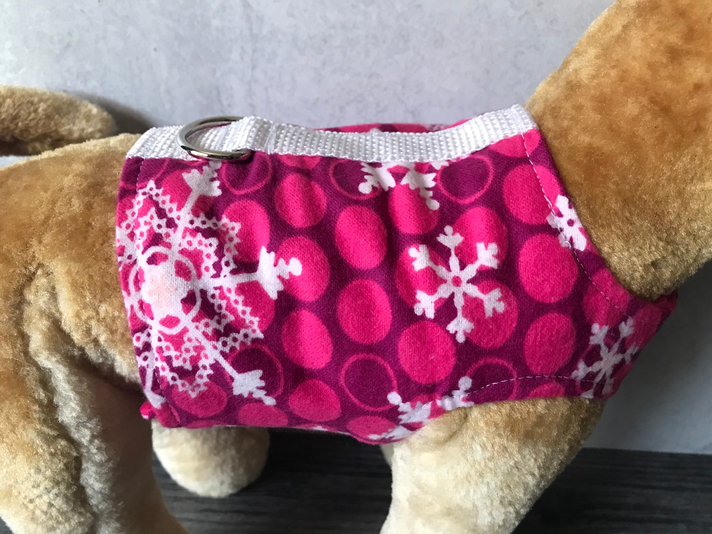 Your pup will be styling in this fun harness vest. This very stylish & comfy Handmade Dog Harness Vest is made of the softest quality flannel lining and flannel exterior. It features a wrap around collar and D Ring. Fastens with velcro at neck and under belly. This harness is also suitable for cats. These harnesses are designed for smaller dogs.
