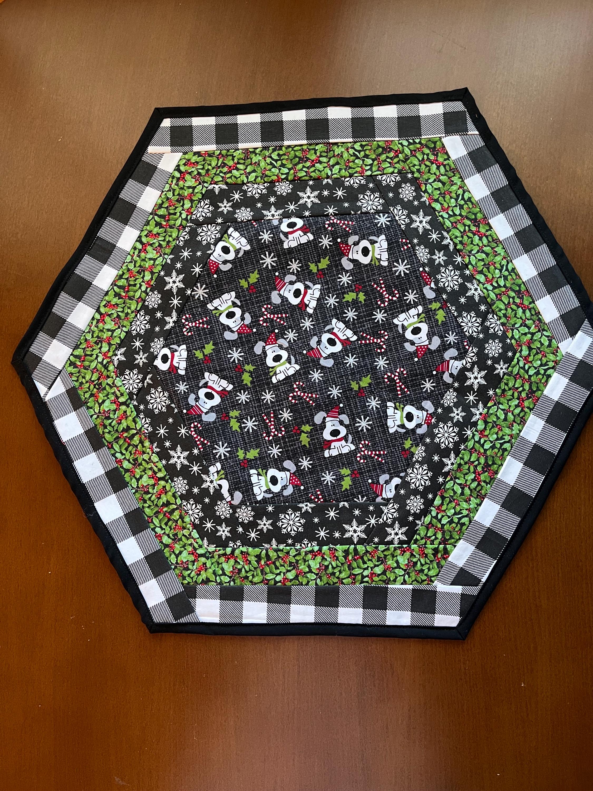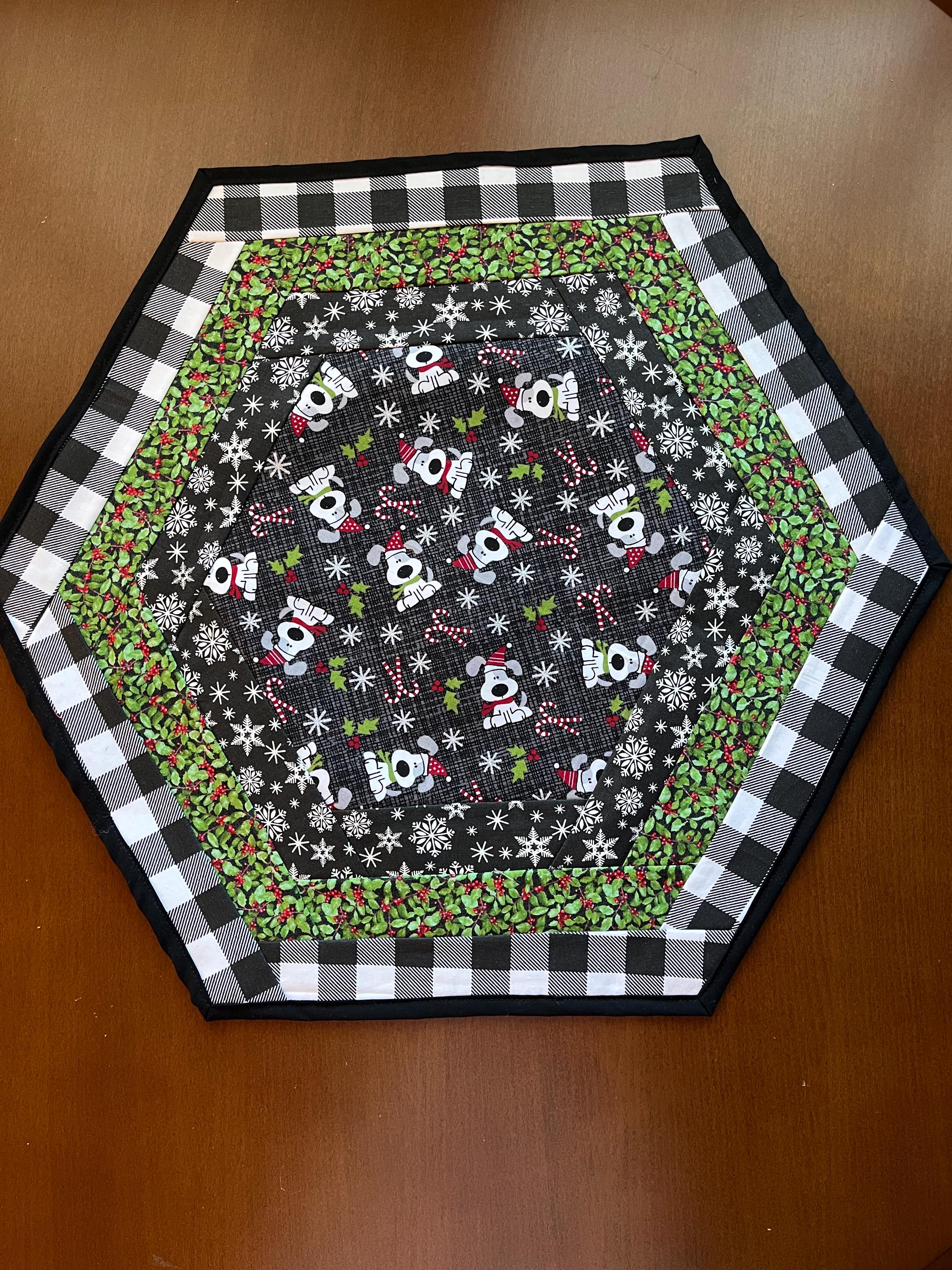 Christmas Table Topper hexagon dogs