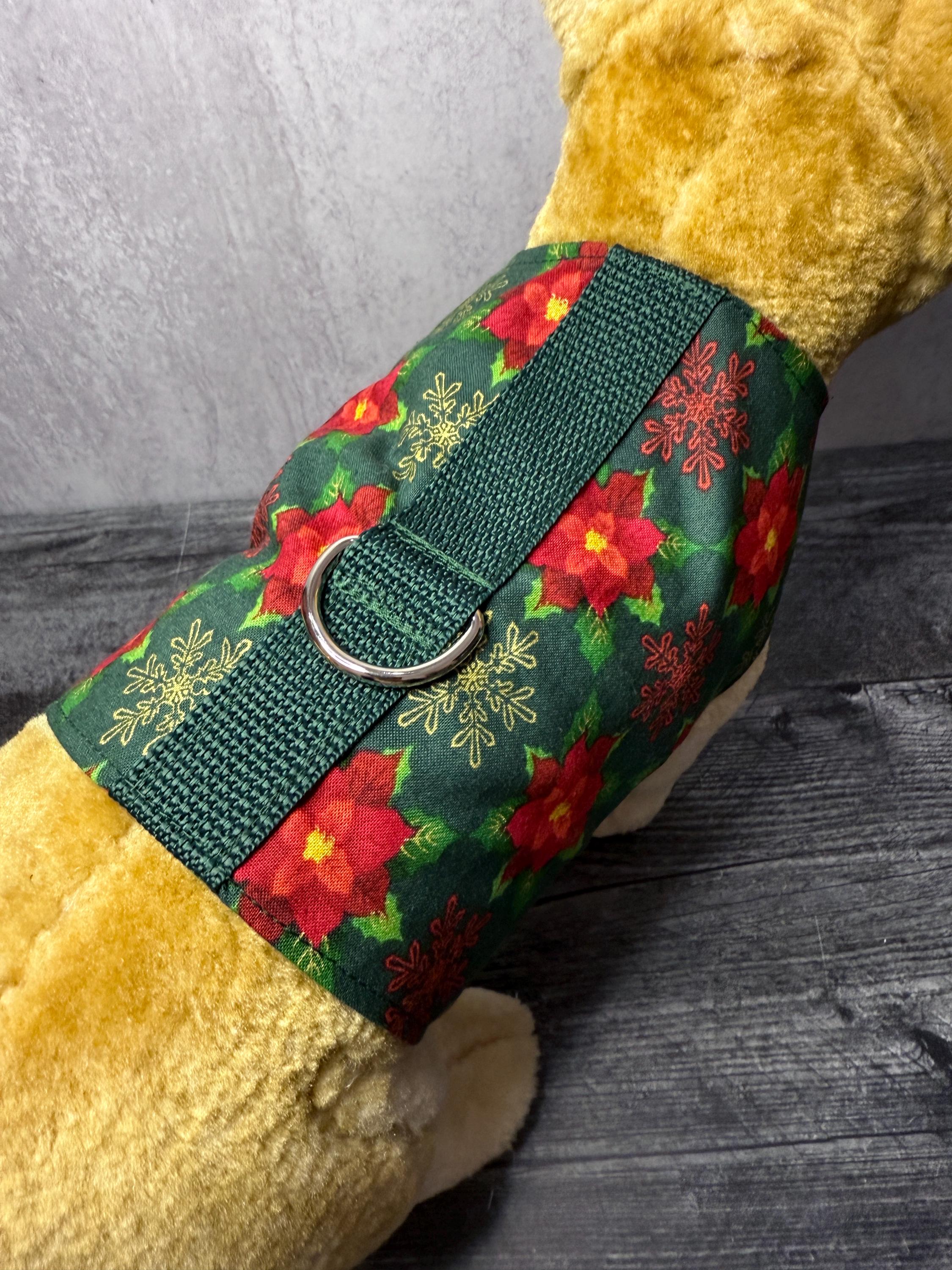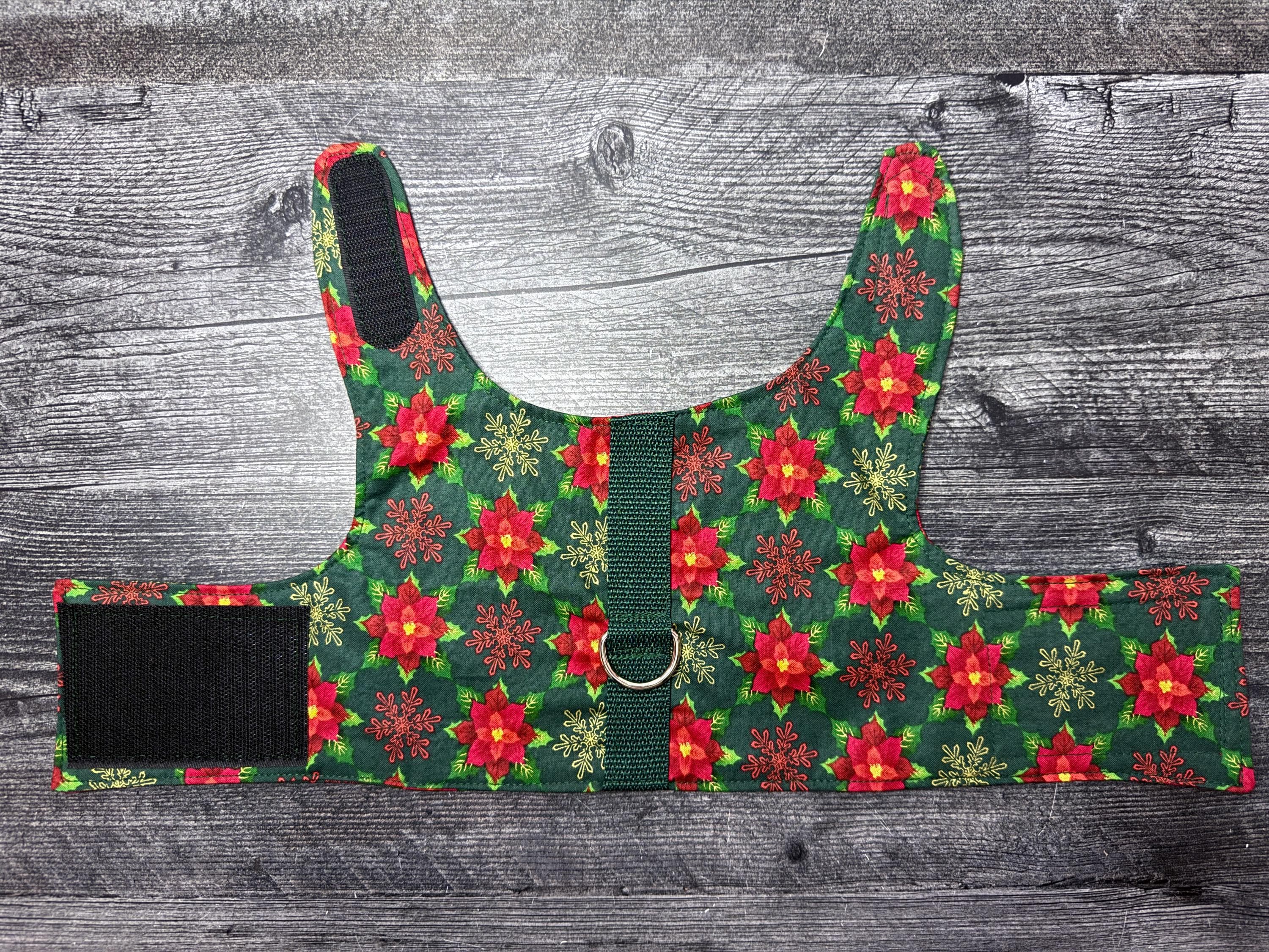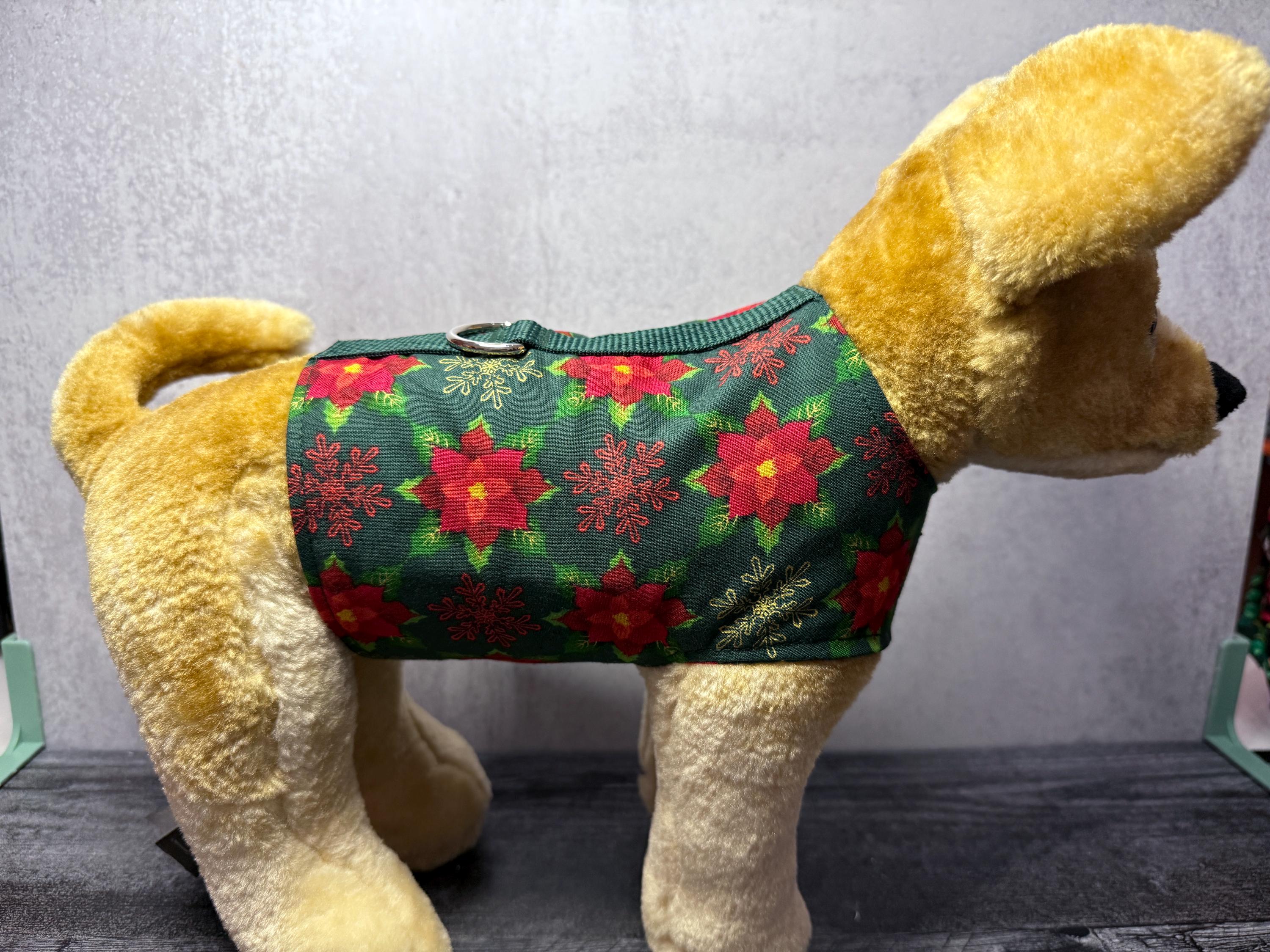Your pup will be styling in this fun harness vest. This very stylish & comfy Handmade Dog Harness Vest is made of the softest quality cotton lining and cotton exterior. It features a wrap around collar and D Ring. Fastens with velcro at neck and under belly. This harness is also suitable for cats. These harnesses are designed for smaller dogs.