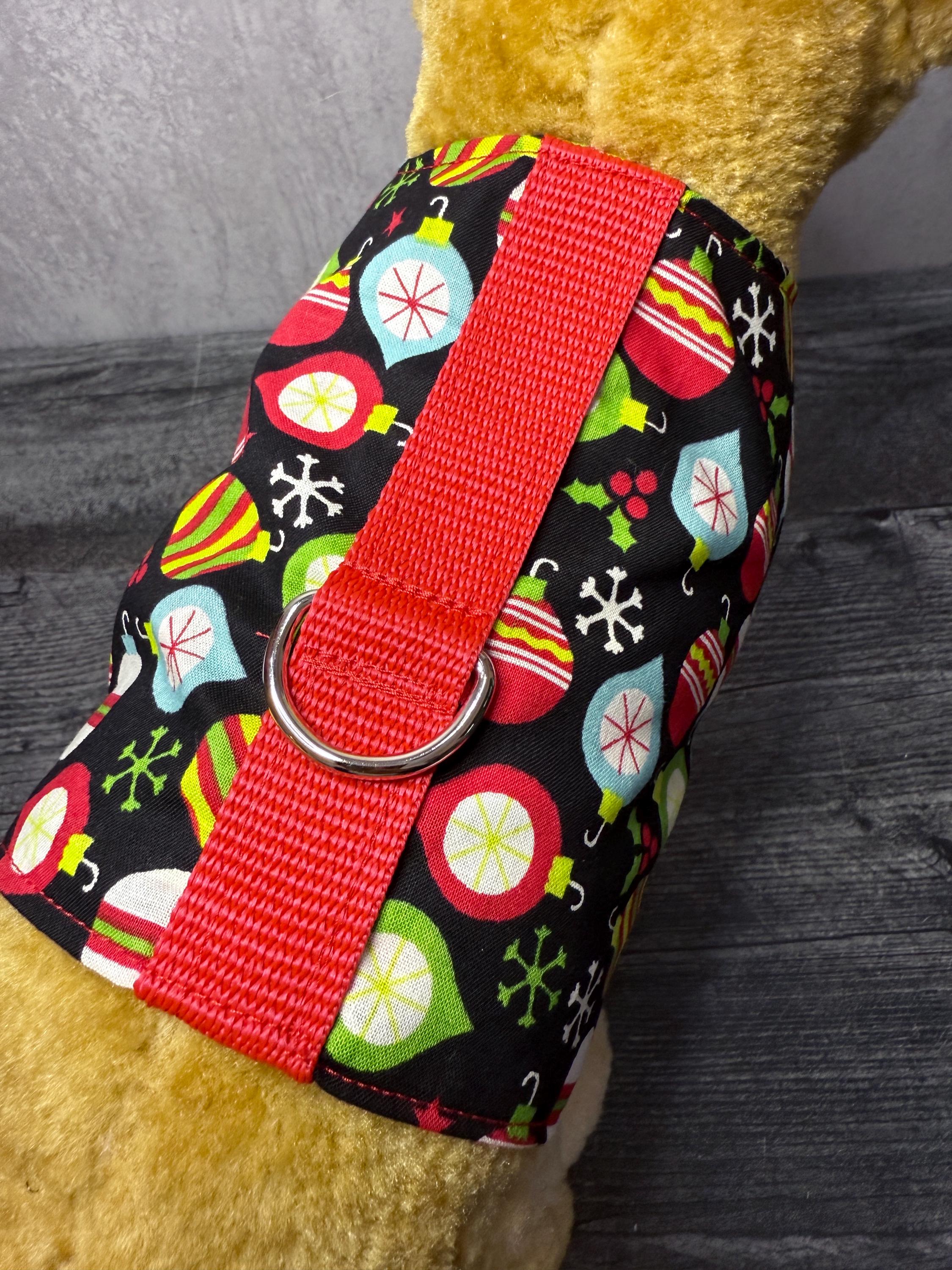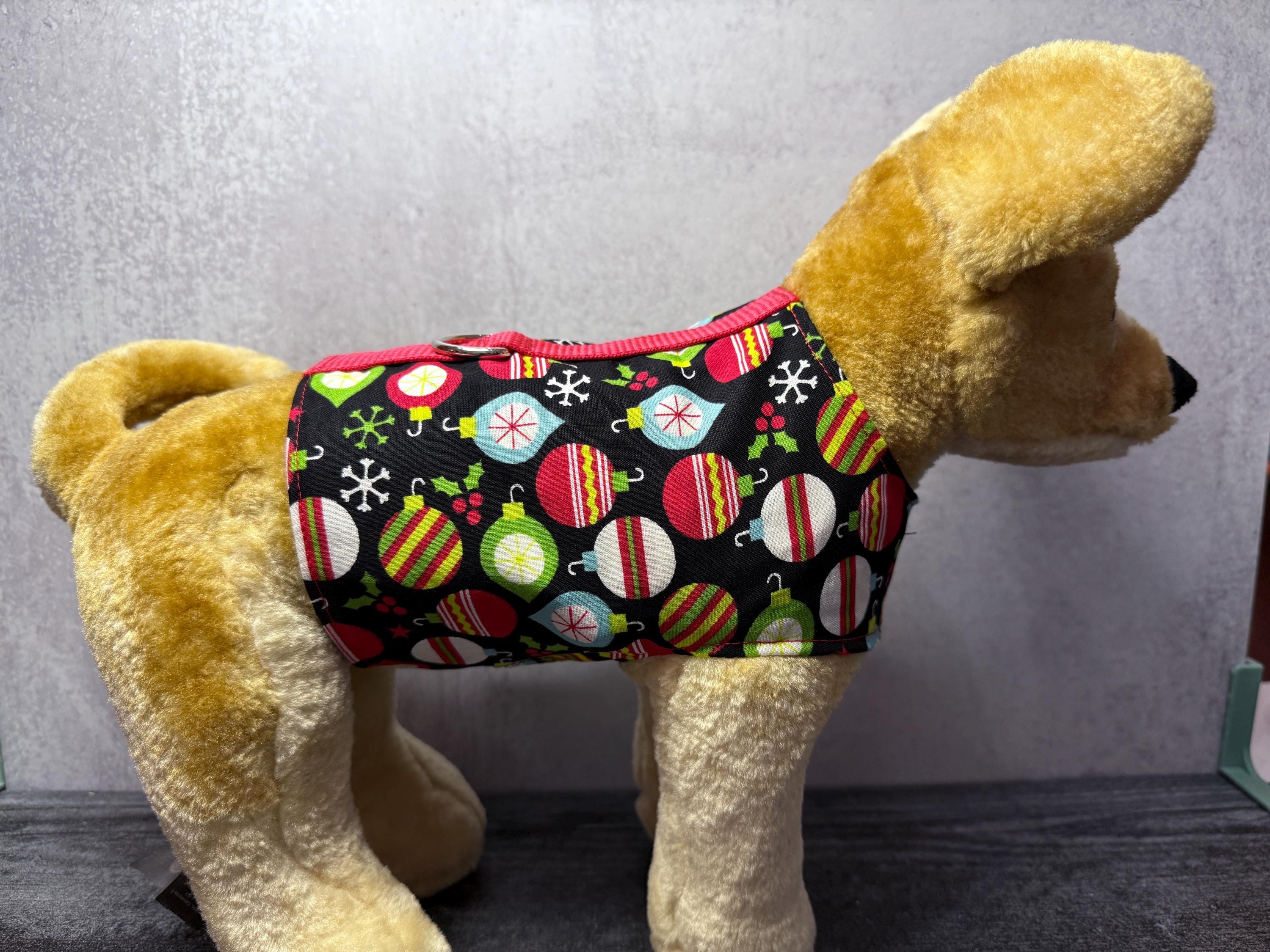 Your pup will be styling in this fun harness vest. This very stylish & comfy Handmade Dog Harness Vest is made of the softest quality cotton lining and cotton exterior. It features a wrap around collar and D Ring. Fastens with velcro at neck and under belly. This harness is also suitable for cats. These harnesses are designed for smaller dogs.