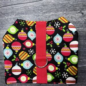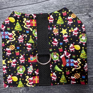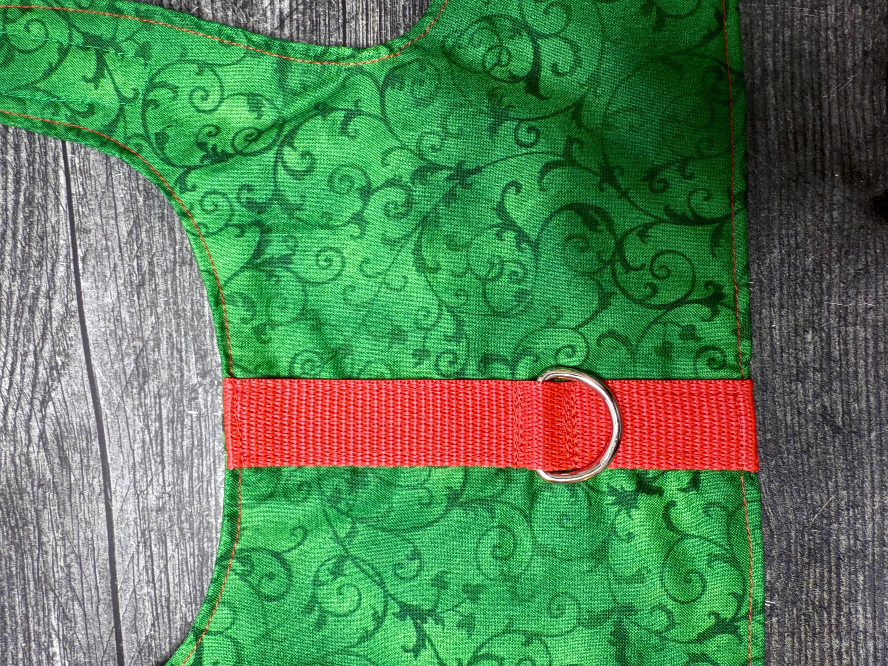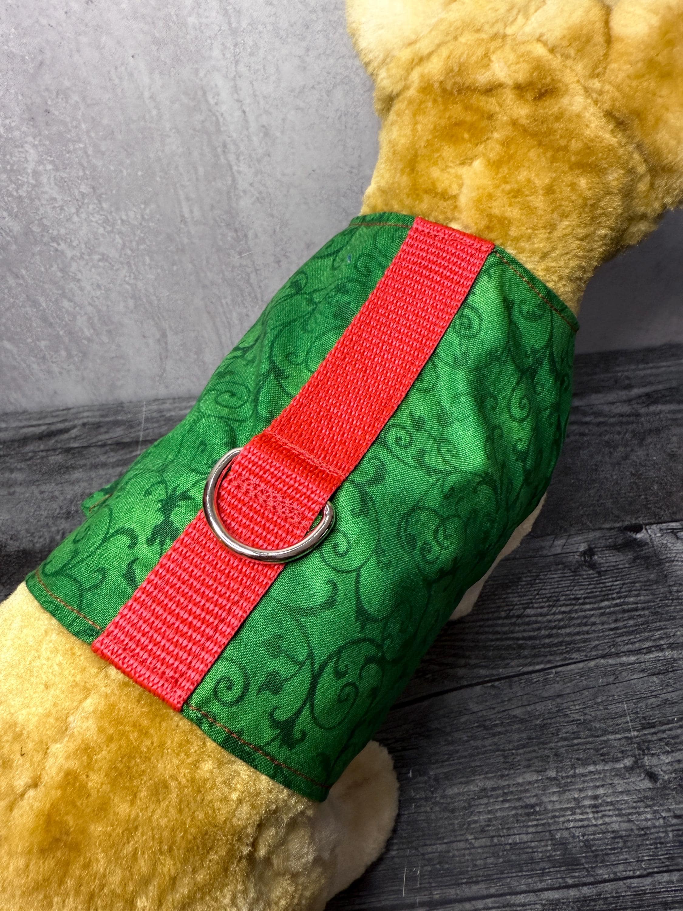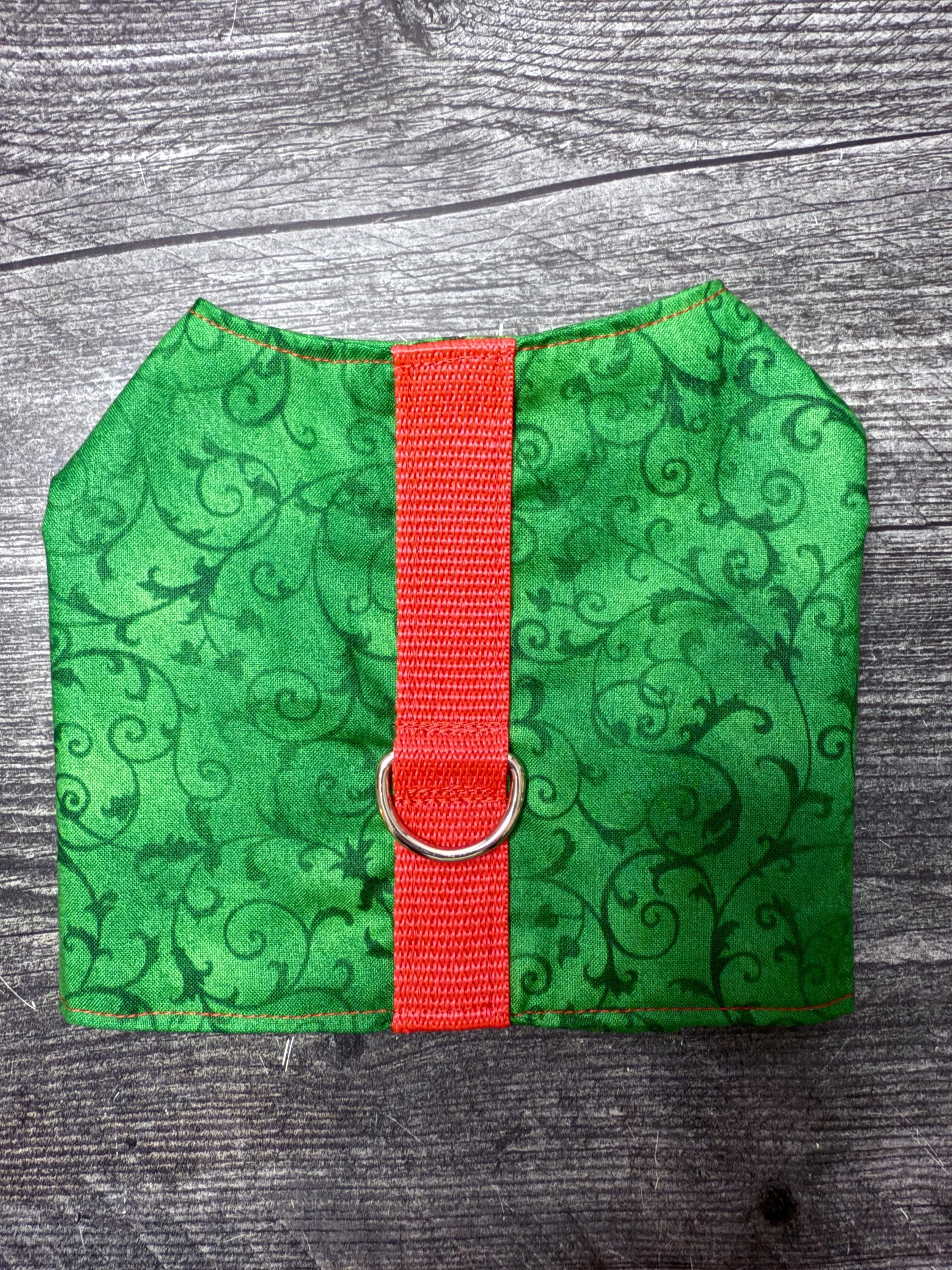 Your pup will be styling in this fun harness vest. This very stylish & comfy Handmade Dog Harness Vest is made of the softest quality cotton lining and cotton exterior. It features a wrap around collar and D Ring. Fastens with velcro at neck and under belly. This harness is also suitable for cats. These harnesses are designed for smaller dogs.